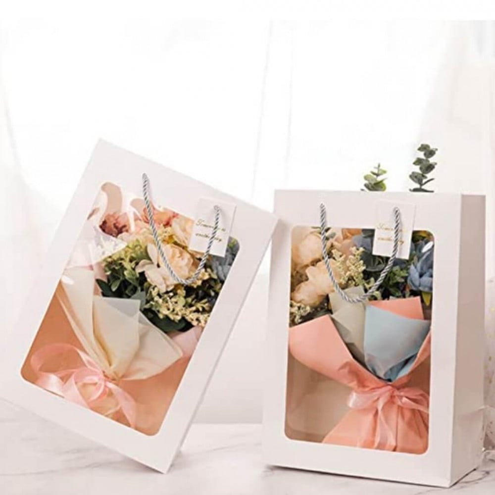 اكياس بنيه بنافذه شفاف من الامام و حبل من الجوانب