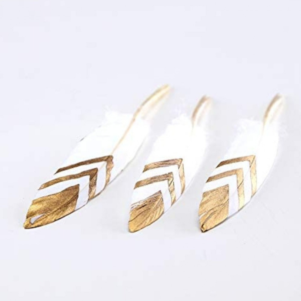 - ابتكر مظهرًا بوهيميًا لمناسبتك أو مشاريعك الفنية والحرفية باستخدام هذه الريش ذي الرأس الذهبي. يتم غمس الريش في الطلاء الذهبي ويلمع بشكل جميل ضد أشعة الشمس. استخدميها لصنع صائد الأحلام وتزيين قطع الملابس والمجوهرات ولصنع الأبراج. كما أنها تصنع قطع ديكور رائعة: ضعها في إناء أو وعاء؛ علقها على الأشجار أو الجدران أو الأسقف مثل إكليل للديكورات؛ وأكثر من ذلك. الريش هو ريش حقيقي تم الحصول عليه بطريقة أخلاقية. مثالي لحفلات الزفاف من طراز بوهيمي وحفلات ما قبل الزفاف والمولود الجديد والحفلات وديكور المنزل وحفلات الاستحمام وعيد الشكر
