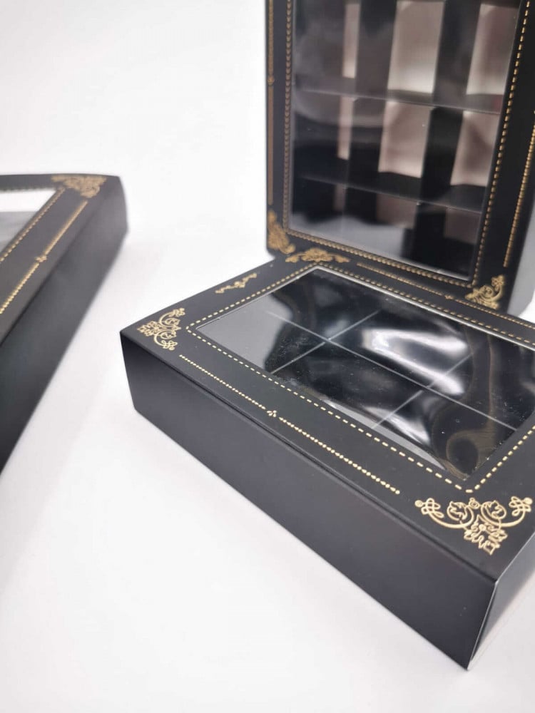 • البوكس اسود فاحم مع ايطار ذهبي بماء الذهب يعطي انطباع الفخامه